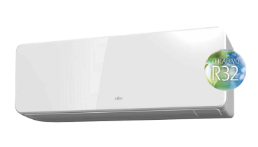 Standardní jednotky Fujitsu s novým chladivem R32 – vhodné na chlazení i vytápění objektu (dle ztrát), dobrý výkon, pokročilejší a rozšířené funkce, nový design jednotky.